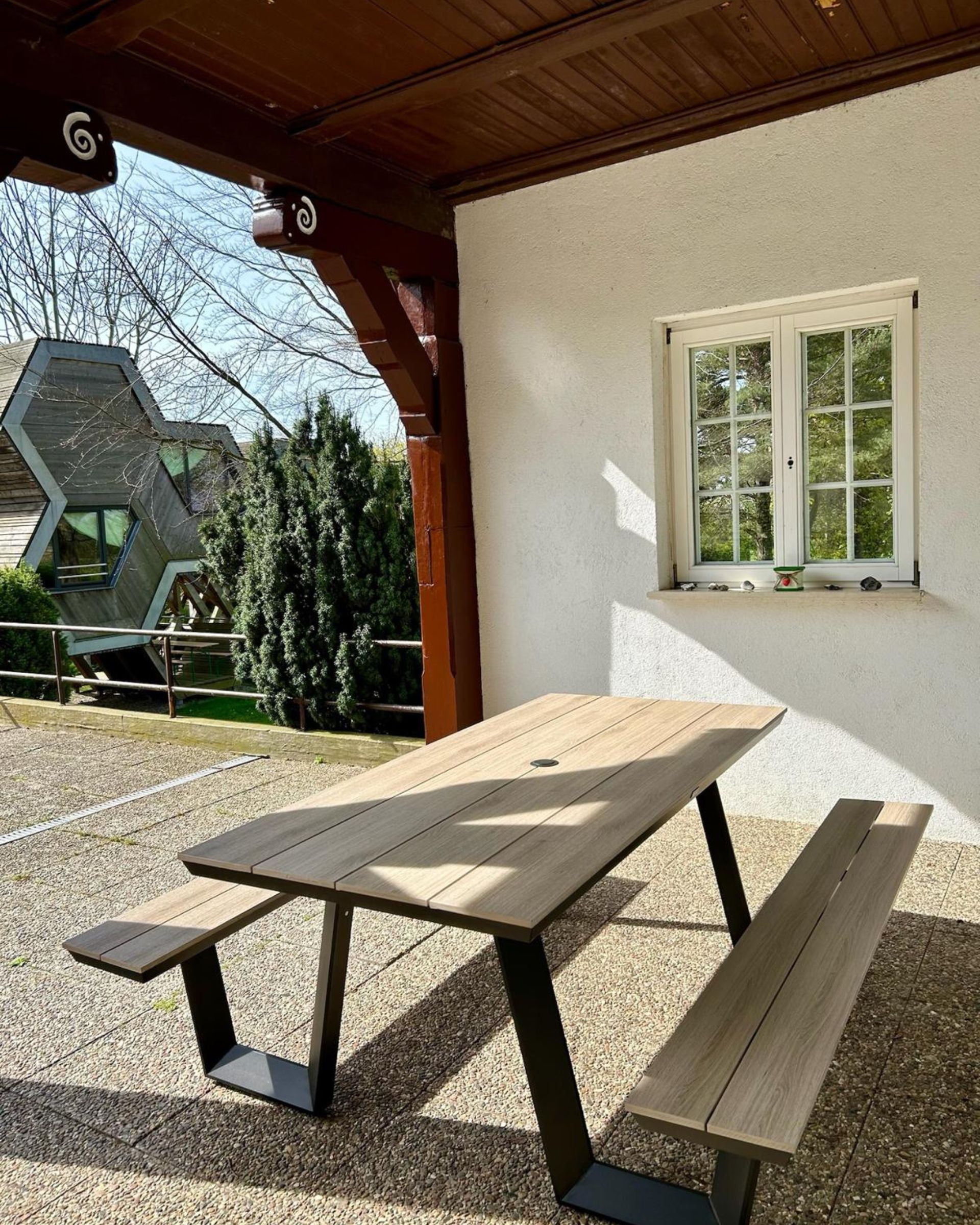 Die großzügige Außenanlage bietet einen großen Garten, eine Feuerschale und eine Tischtennisplatte für sportliche Aktivitäten. Ein Grillplatz und gemütliche Sitzmöglichkeiten laden zum Entspannen und geselligen Beisammensein ein.